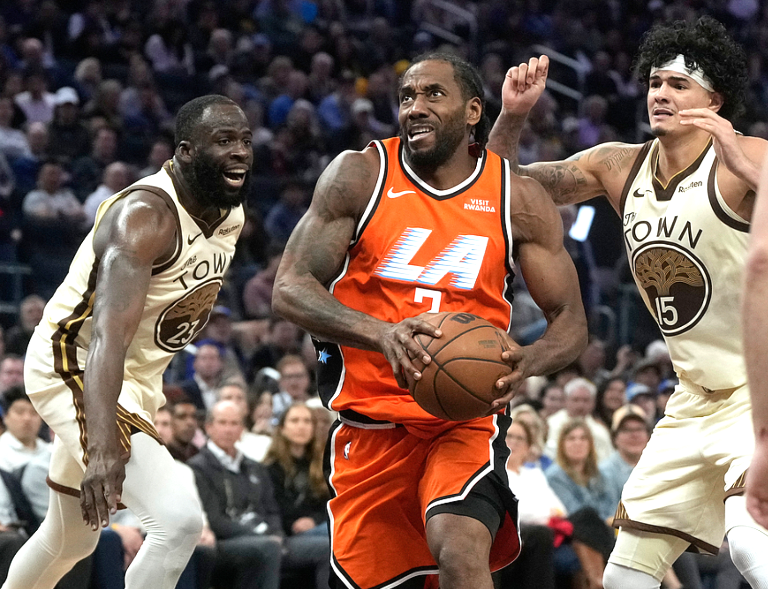 快船客场挑战勇士,快船是背靠背作战,体力不如勇士,快船方面加兰复出,迎来快船生涯首秀,科林斯、比尔缺阵,勇士方面库里、巴特勒、波津、佩顿、小库里缺阵,上半场比赛勇士优势明显,一度领先17分,半场战罢领先14分,第三节快船强势反弹,单节追回12分,三节战罢勇士领先2分,第四节快船延续了强势状态,他们开局反超比分,一度领先17分,最终114-101击败勇士。伦纳德14中9(三分6中3)得到23分8板4助2断,邓恩10中7得到16分7板7助2断、马瑟林13中6得到17分7板,勇士方面波杰姆18中9(三分6中3)得到22分7板3助、霍福德11中5(三分8中4)得到17分6板3助。
